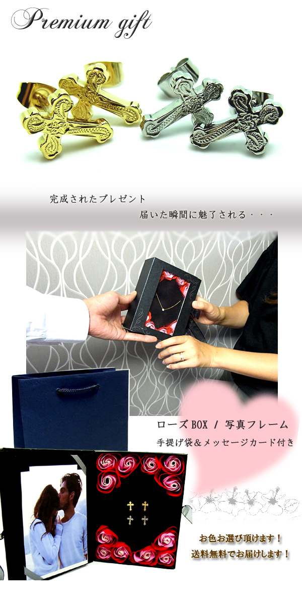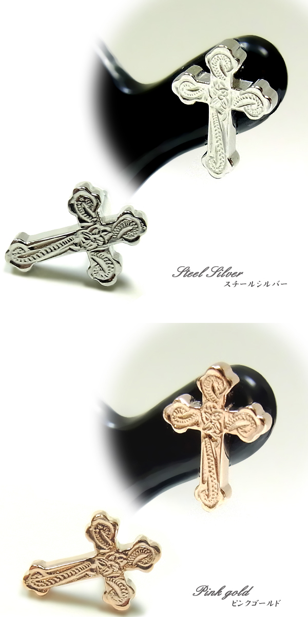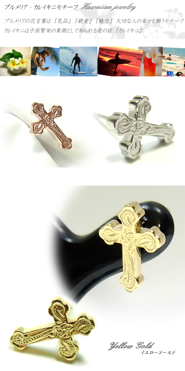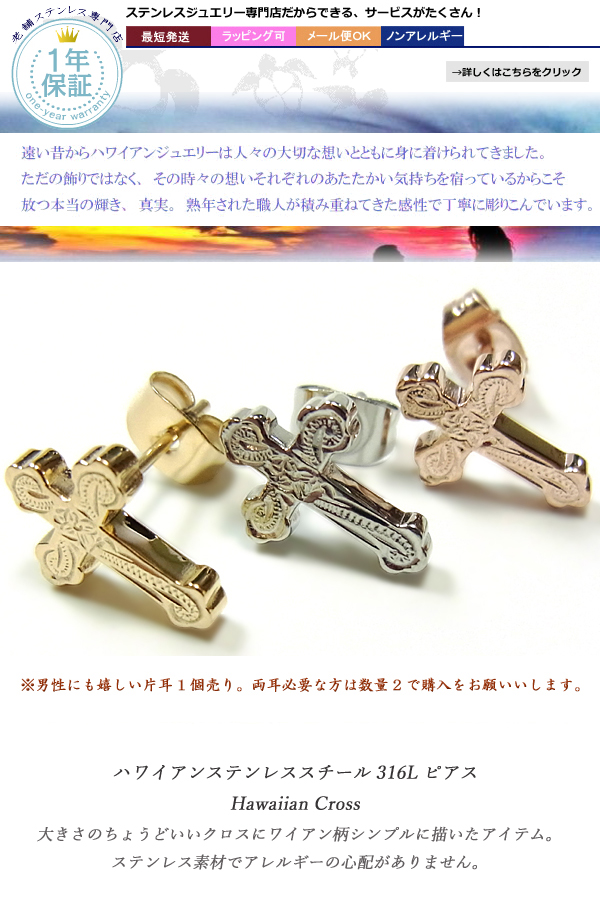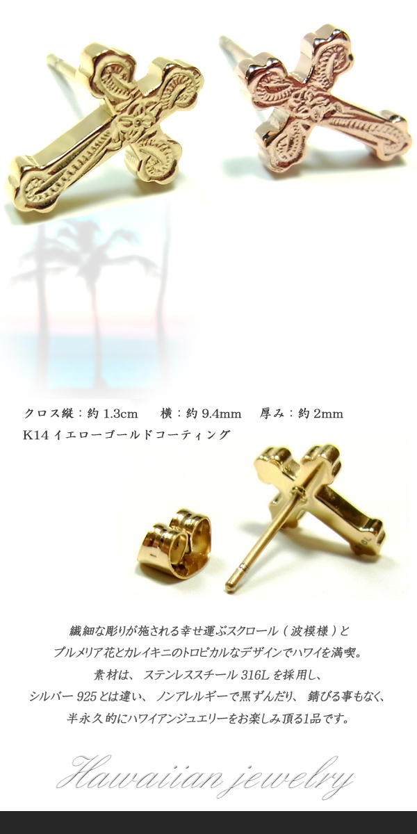 【両耳用】ペアピアス ペアハワイアンジュエリー クロス スチールシルバー ゴールド ピンクゴールド プレゼント 花 フラワー ラッピング対応 アレルギー対応