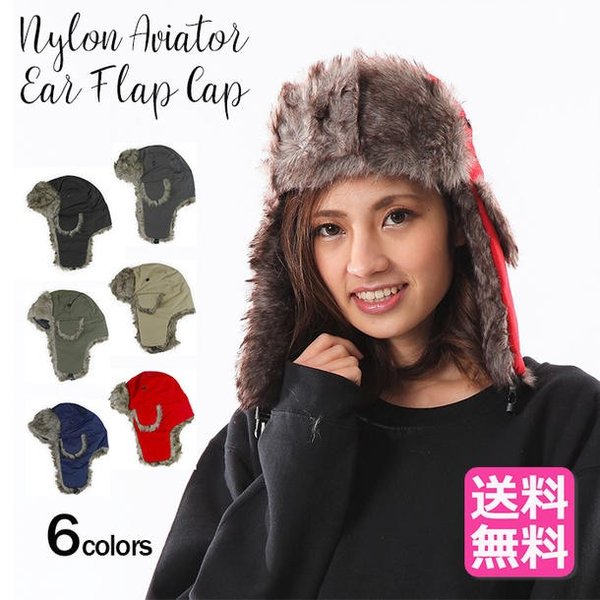 ナイロン アビエーターキャップ フェイクファー フラップキャップ パイロット 耳当て付き帽子 パイロット帽 おすすめ 送料無料