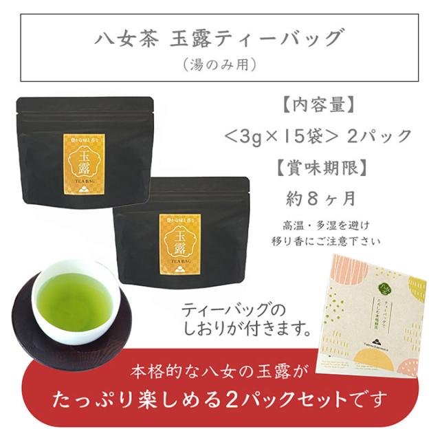 玉露 ティーバッグ 八女茶 送料無料 お茶 日本茶 ゆのみ用 3g×15入 2袋セット 八女茶の里 専門店 正規販売品