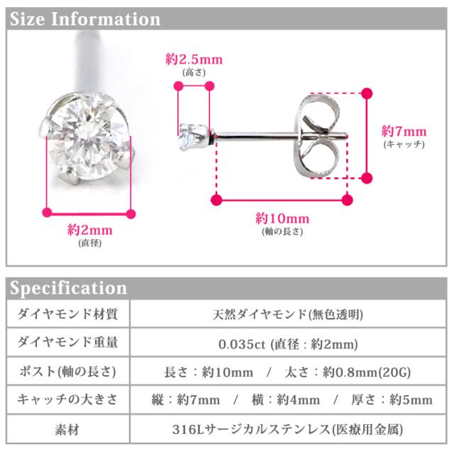 ピアス 金属アレルギー対応 0.035ct 天然ダイヤモンド ピアス サージカルステンレス 【両耳用】 記念日 誕生日 プレゼント ピアッシングナナ