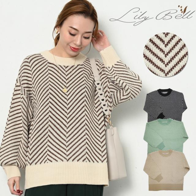 ・ヘリンボーンと配色カラーデザインが大人かわいい スタイルを完成させる着映えニットが新登場。ゆったりとしたシルエットのオーバーサイズで体型カバーにも