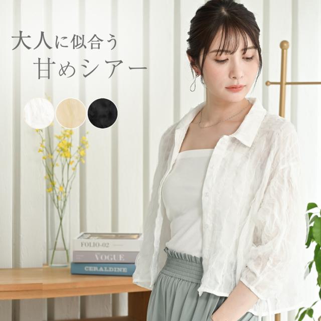 シアーシャツ レディース 半袖 ブラウス シャツジャケット アウター トップス 夏 ショート丈 カーディガン ボレロ シアー シャツ 透け感 シースルー ドロスト 大人 きれいめ ゆったり おしゃれ 薄手 五分袖 七分袖 涼しい ショート チュールレース 羽織 襟付き ライトアウター