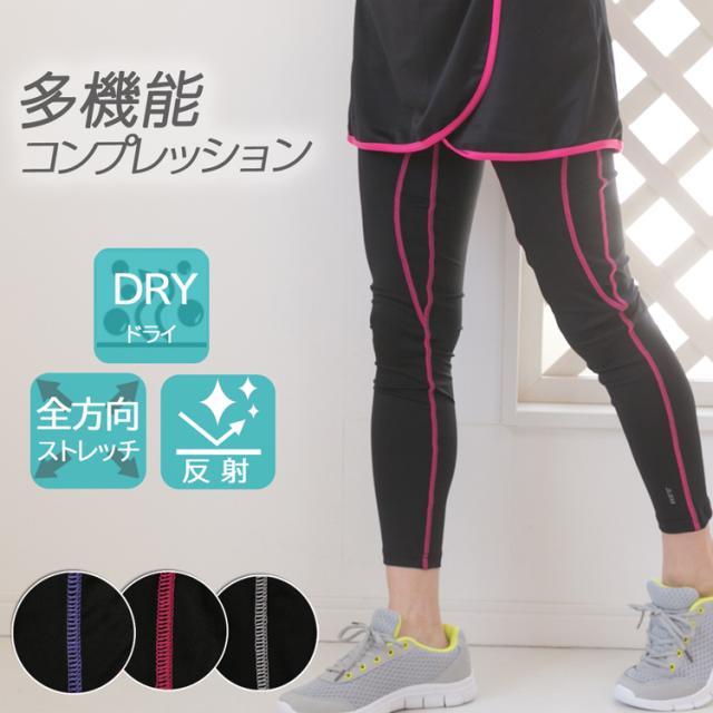 ・ブラックにカラフルなステッチが映えるコンプレッションタイツ。吸汗速乾でスポーツやアウトドアなどアクティブなシーンに最適です。