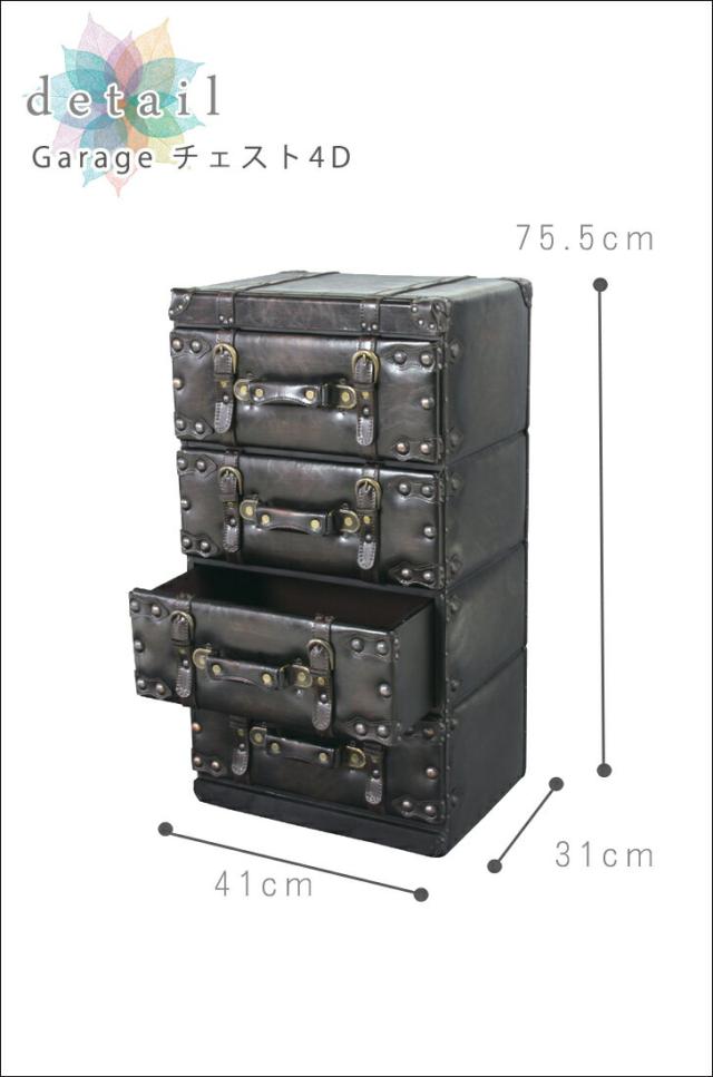 Garage ガレージ チェスト4D (収納,引き出し,アメリカン,西海岸,4段,トランク,おしゃれ,ヴィンテージ,おすすめ)
