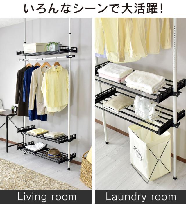 突っ張り棒 伸縮式 つっぱりポール ポール ハンガーラック 棚付き 省スペース 衣類 ハンガー 室内干し アーク棚付き インテリア家具 おすすめ おしゃれ 北欧 big_ki プレゼント tm