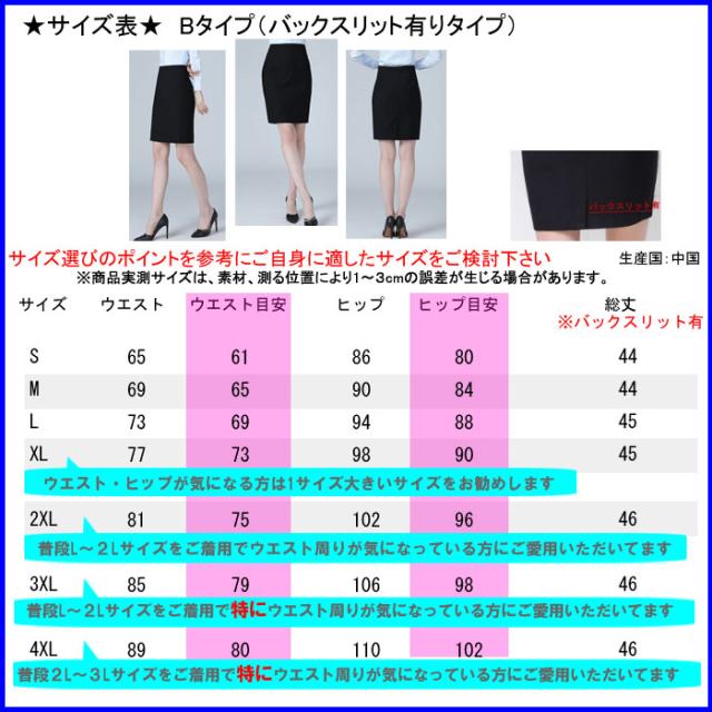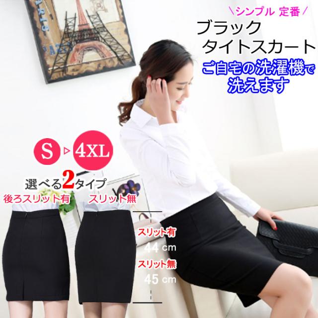 洗えるタイトスカート 膝丈 制服 ビジネス オフィス スーツ リクルート 就活 OL 事務服 無地 黒 ブラック 大きいサイズ 小さいサイズ S M L 2L 3XL 4XL