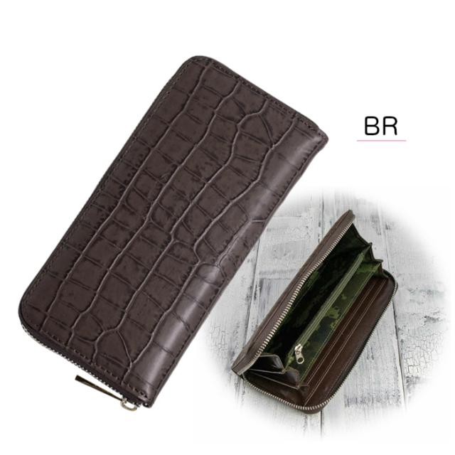 クリスマス (50%OFF)値下げしました ラウンドファスナー長財布 プレゼントに Luciano Valentino ルチアーノ バレンチノ 牛革マットクロコ ブラウンのみで終了 誕生日 記念品 プレゼント 送料無料