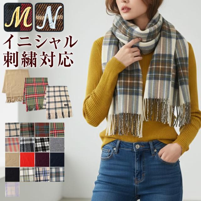 イニシャル刺繍無料★宅配便配送マフラー レディース ストール 大判ストール ポンチョ 大判 ストール チェック 無地 春夏 厚手 かわいい イニシャル 刺繍 プレゼント ギフトイニシャル刺繍 大判チェックストール