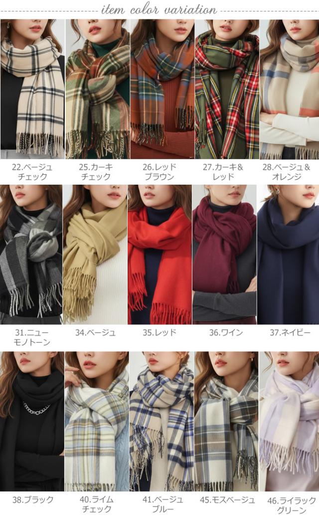 ■カラー:22.ベージュチェック(531)・25.カーキチェック(4)・26.レッドブラウン(9)・27.カーキ&レッド(69)・28.ベージュ&オレンジ・31.ニューモノトーン・32.ホワイト&ブラック(32)・33.グレンチェック(533)・34.ベージュ・35.レッド・36.ワイン・37.ネイビー・38.ブラック・40.ライムチェック(187)・41.ベージュブルー(177)・45.モスベージュ(117)・46.ライラックグリーン(180)