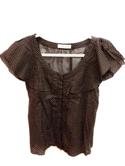 【中古】ビームスハート BEAMS HEART シャツ ブラウス Uネック 半袖 ドット 茶 ブラウン /YI レディース