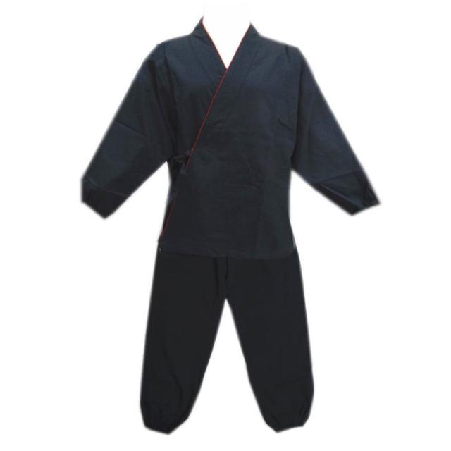 作務衣 さむえ 女性用 綿 無地 黒色 M L 部屋着 ユニフォーム 簡単 レディース