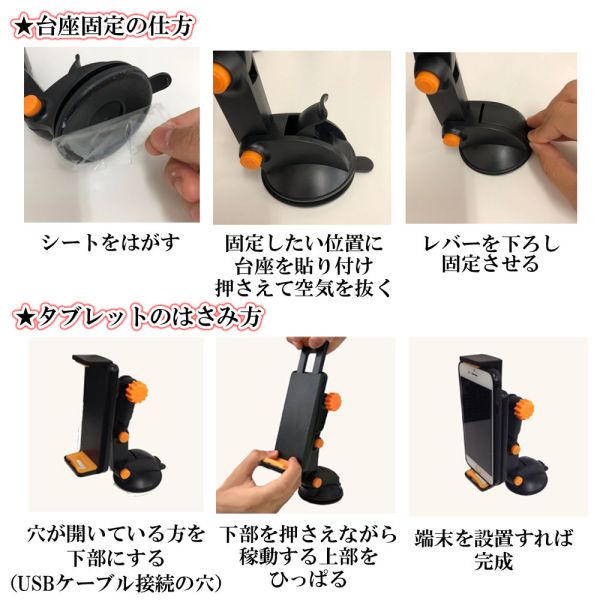 タブレットホルダー 吸盤 車載 スマホ スマートフォン 固定 スタンド 送料無料