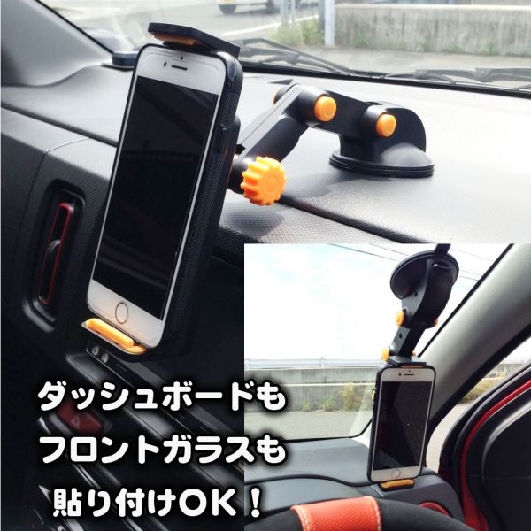 ダッシュボードやガラスにしっかり固定できるホルダーです。