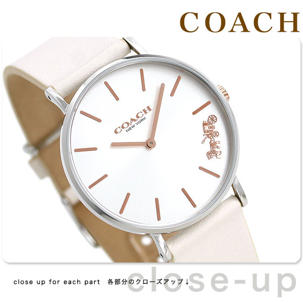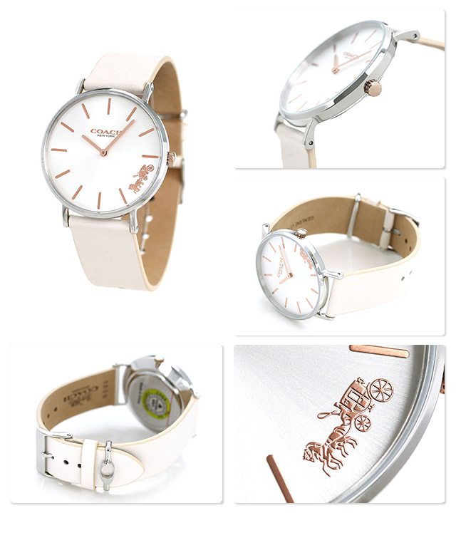 コーチ COACH 腕時計 レディース 36mm 革ベルト 14503117 ペリー シルバ—×クリーム