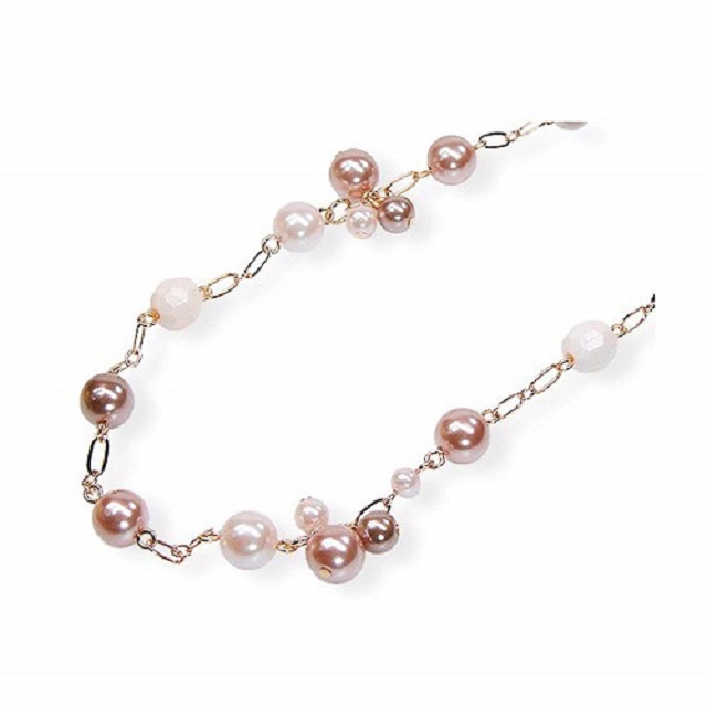 ピンクゴールドマルチカラーフェイクパールネックレス【送料無料】【6月誕生石真珠】