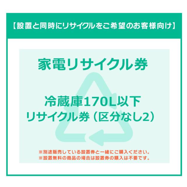 【設置と一緒にリサイクルをご希望のお客様向け】 家電リサイクル券 冷蔵庫 冷蔵庫 170L以下 (区分なし2) 【代引き不可】
