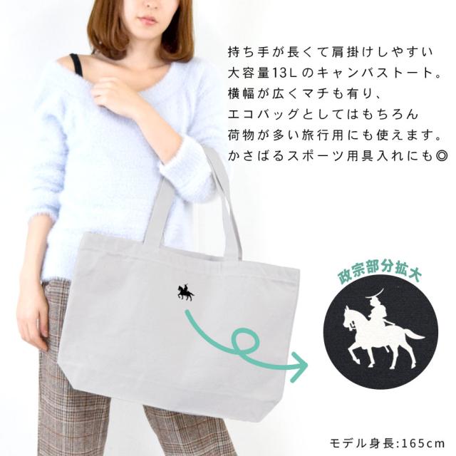 トートバッグ 政宗 仙台藩 伊達政宗 騎馬像 レディース メンズ キャンバス 無地 プリント 大きめ 横長 13L 帆布 肩掛け 大容量 軽量 マザーズ エコバッグ お洒落 バッグ A4 手提げ 旅行 トラベル スポーツ カジュアル BIG 送料無料 (cab151801)