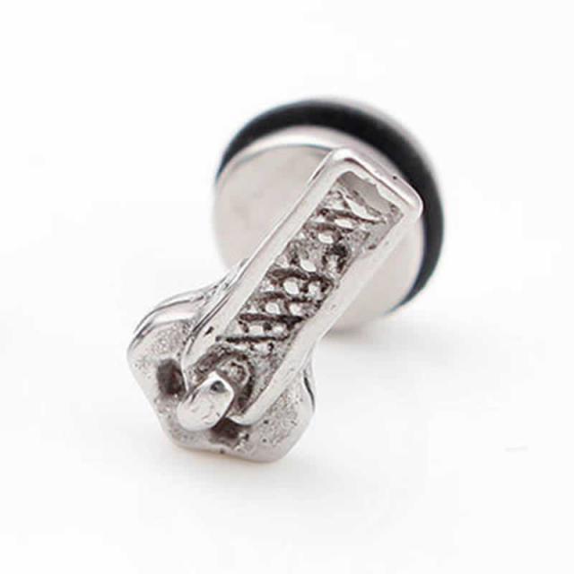 [おもしろ ボディピアス 16G]リアルファスナー フェイクプラグボディーピアス 16ゲージ ボディーピアス ステンレス メンズ レディース 銀色 シルバーカラー ジッパー チャック リアル 面白い 耳たぶ ヘリックス 軟骨 プラグ型 プレゼント クリスマス ギフト ユニーク