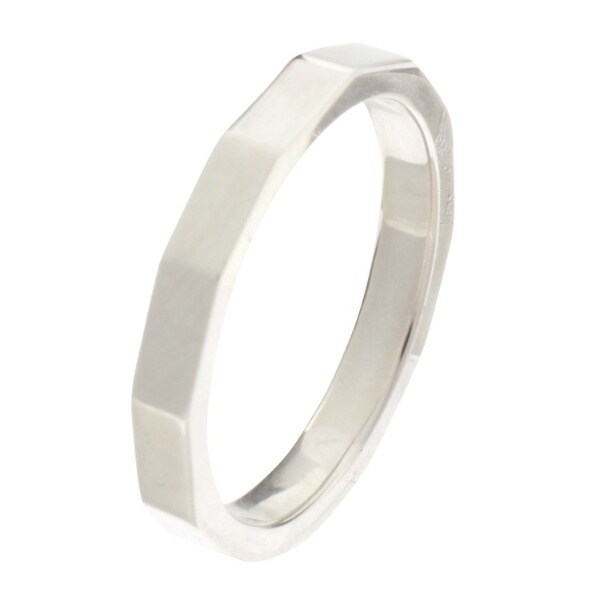 リング全周に面取りデザインを施したタイプ。指を動かす角度や動きによって光り輝く表情が変わる存在感があるシルバーリング。お手入れが簡単で変色しにくい素材を使用した、”ラスティングシルバー”を使ったモダンな曲線が映えるシリーズ。いつまでも美しい輝きを保ちながら、永く愛用いただけるジュエリーです。