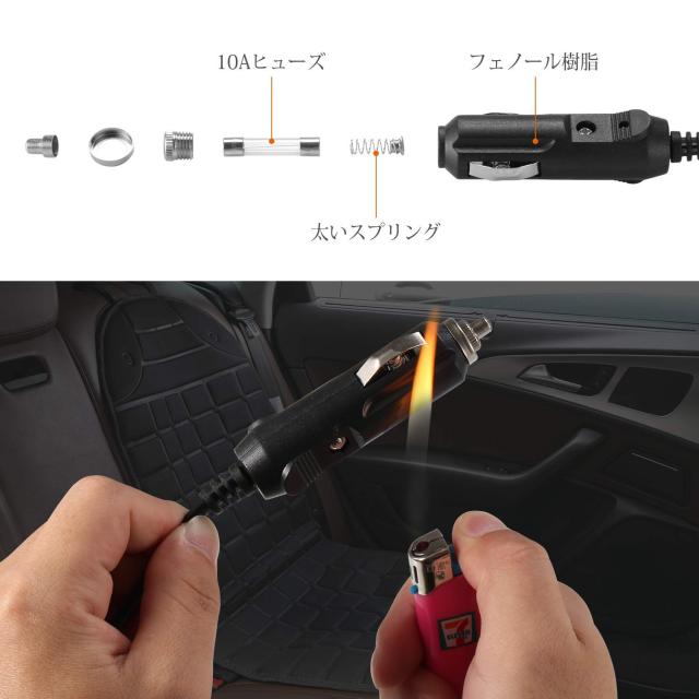 シガーから電源を供給してスイッチを入れるだけであっという間に温かくなり快適なドライブを楽しめます。