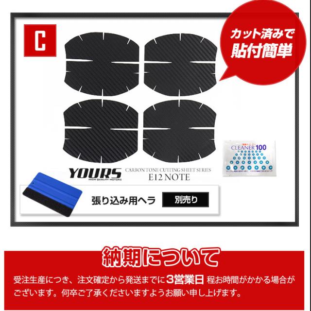 [只今タイムセール開催中][C] E12 ノート e-power 専用 ドアノブ 傷防止用 4PCSセット カット済みシート 全4色 【全グレード適合】 カーボン調 裏面シール NOTE [5]-4