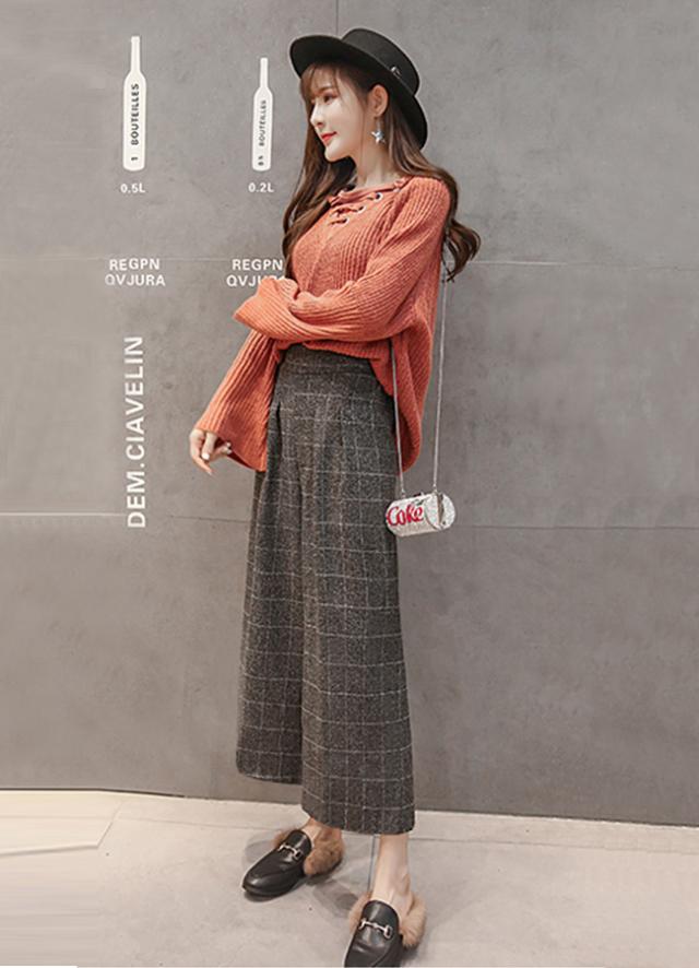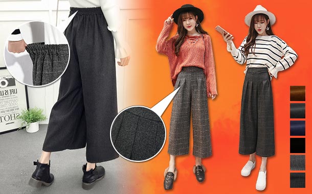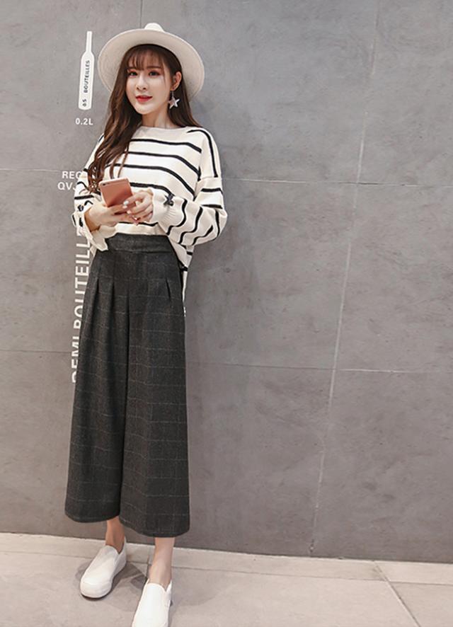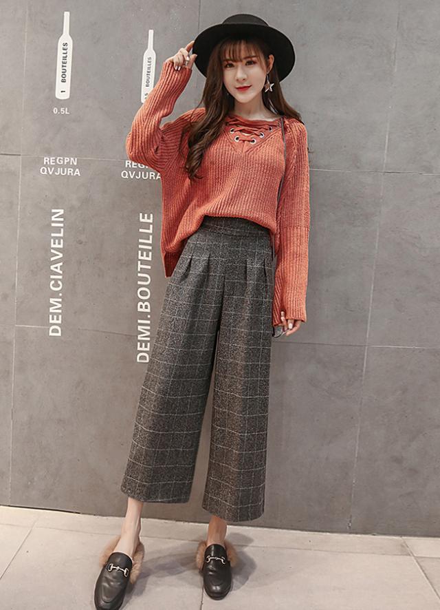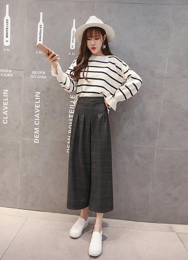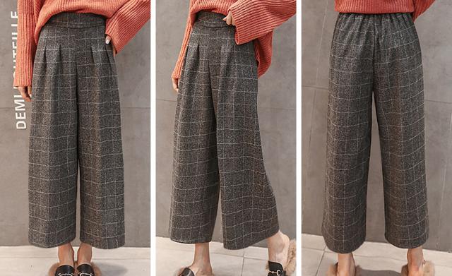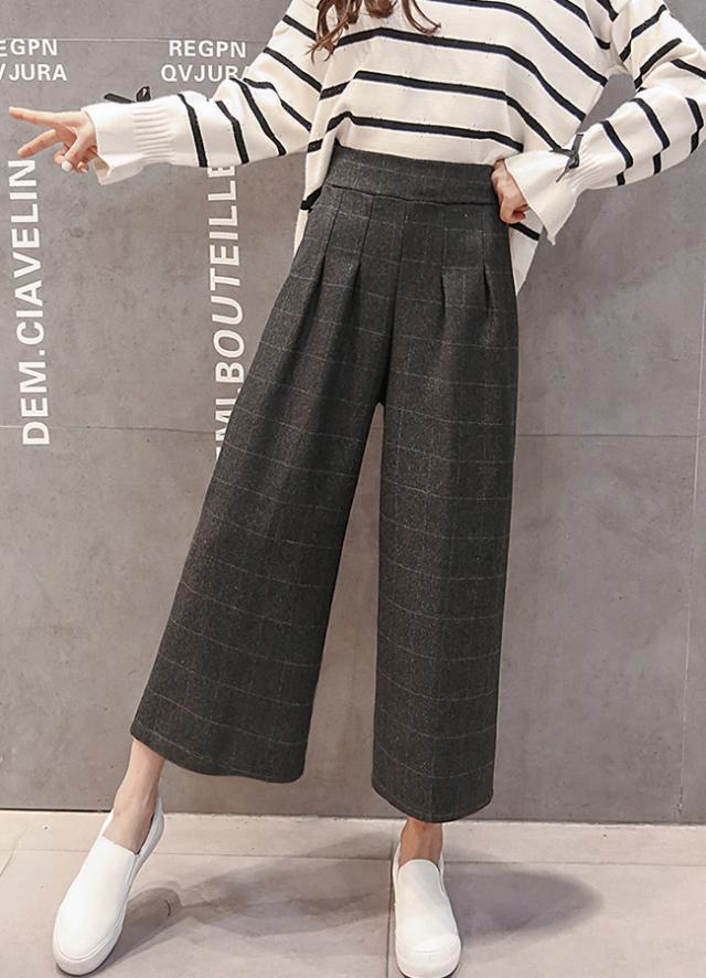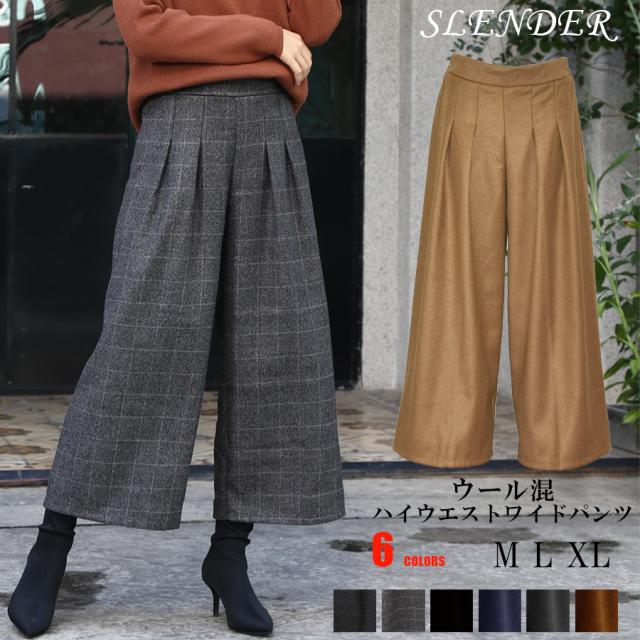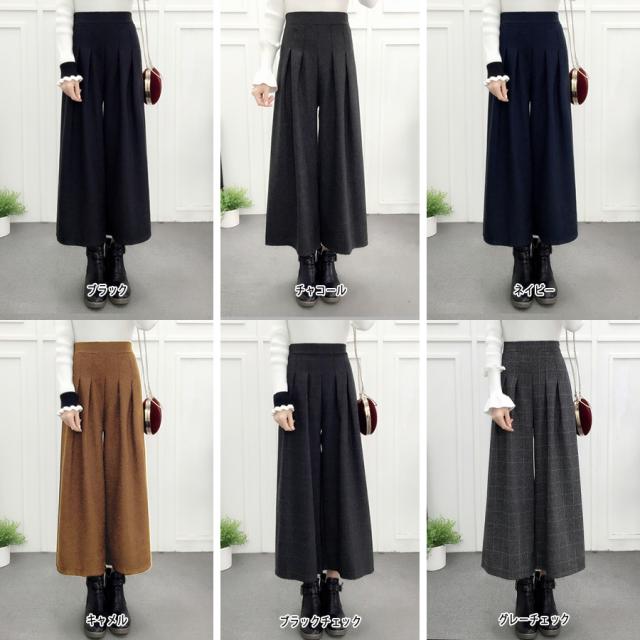 クロップド丈 9分丈 チェックワイドパンツ タック パンツ クロップド丈 9分丈 チェックワイドパンツ タック パンツ 送料無料 u605