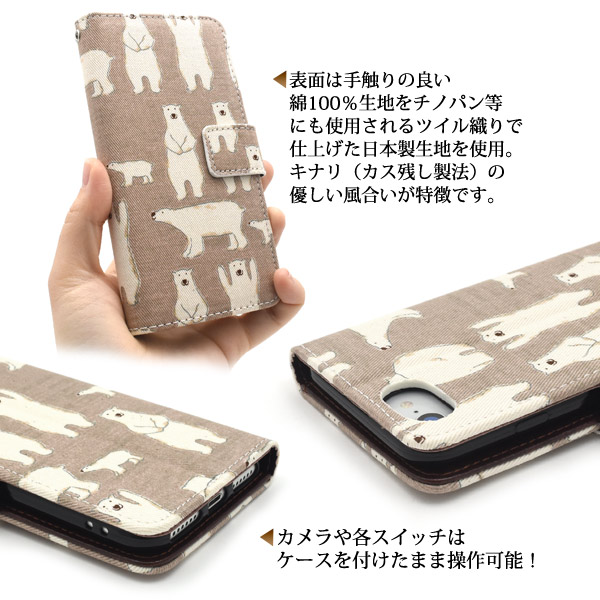 iPhone6/iPhone6s/iPhone8/iPhone7/iPhoneSE(第2世代・第3世代)用 手書き風シロクマデザイン手帳型ケース
