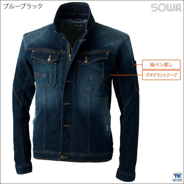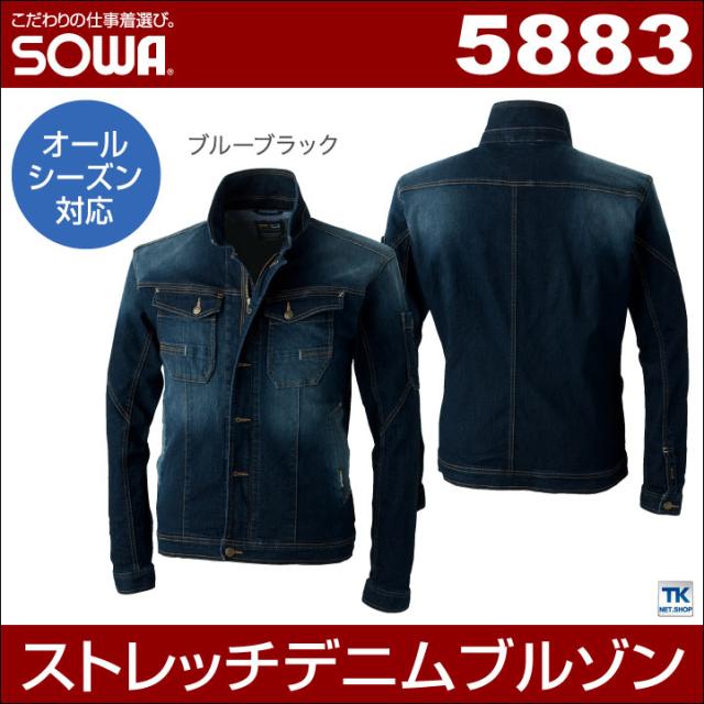 ブルゾン ストレッチ デニム 作業ジャンパー 作業着 作業服 ジャケット アウター ワークウェア 伸縮性 消臭 SOWA 桑和 G.GROUND メンズ オールシーズン 長袖 年間 春夏 秋冬 sw-5883