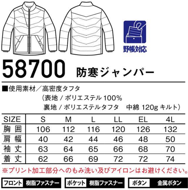 防寒ジャンパー ジャウィン 58700 JAWIN ジャケット ブルゾン【秋冬】迷彩柄 カモフラ 防寒着 防寒服 作業服 作業着 自重堂 58700シリーズ