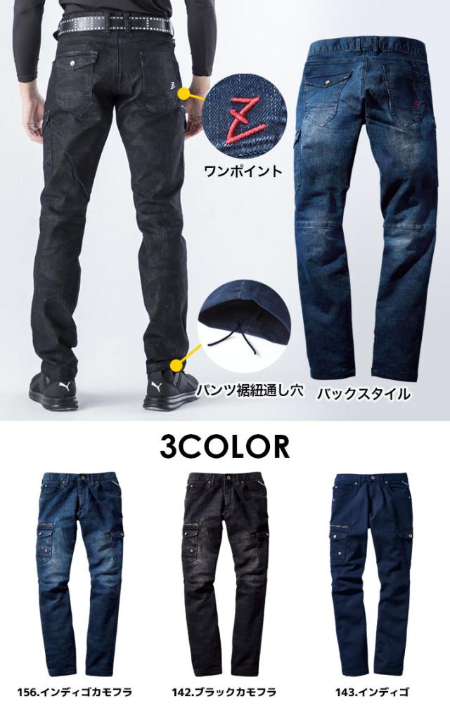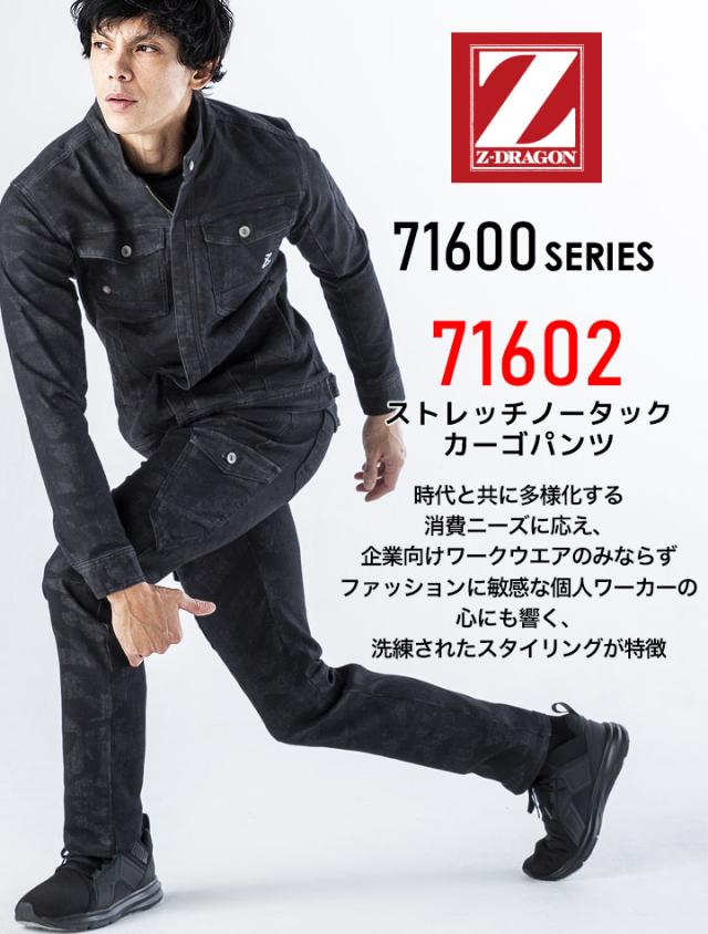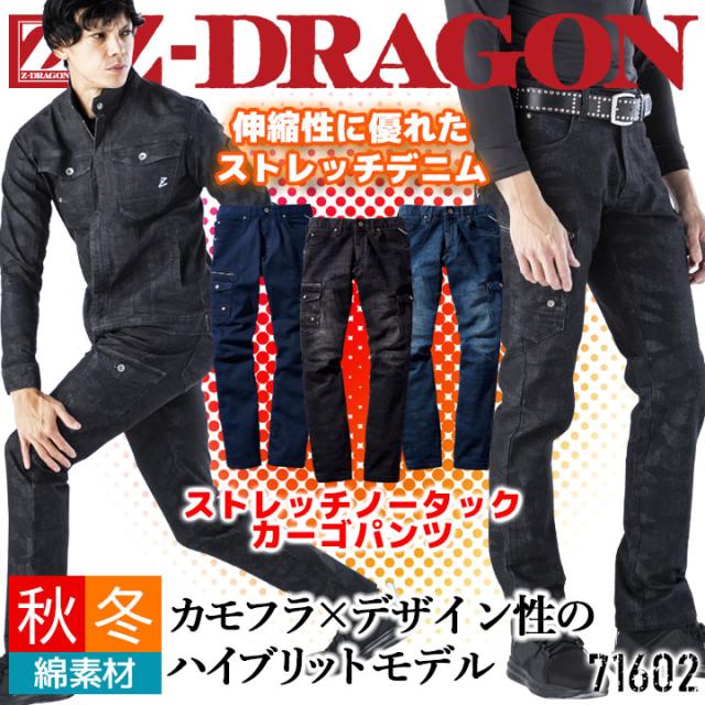 作業服 Z-DRAGON デニム ストレッチノータックカーゴパンツ 71602 秋冬 メンズ ユニフォーム 作業着 自重堂 71600シリーズ【即日発送】
