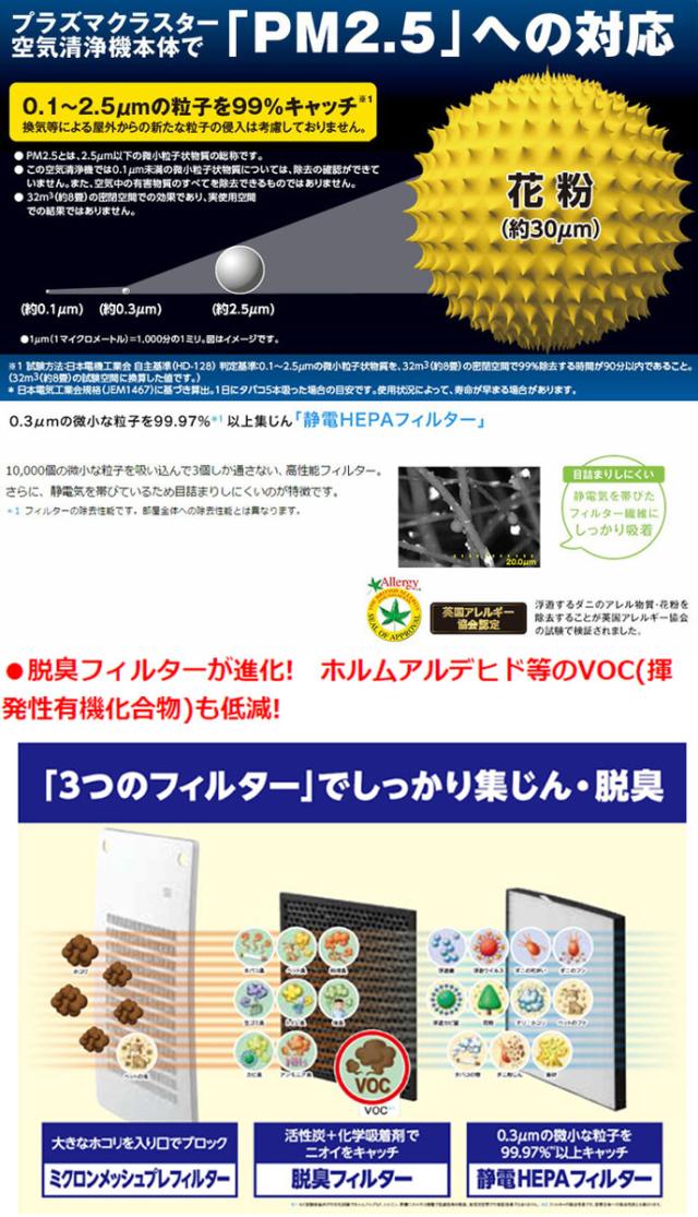 すばやく除菌、浄化、脱臭でお部屋の空気をリフレッシュ! トーカ堂オリジナルモデルです。プラズマクラスターと静電HEPAフィルターのダブル浄化方式。ホルムアルデヒド等の有害ガス(VOC)も低減する脱臭フィルター搭載、パワー浄化機能、湿度・温度表示機能付き。