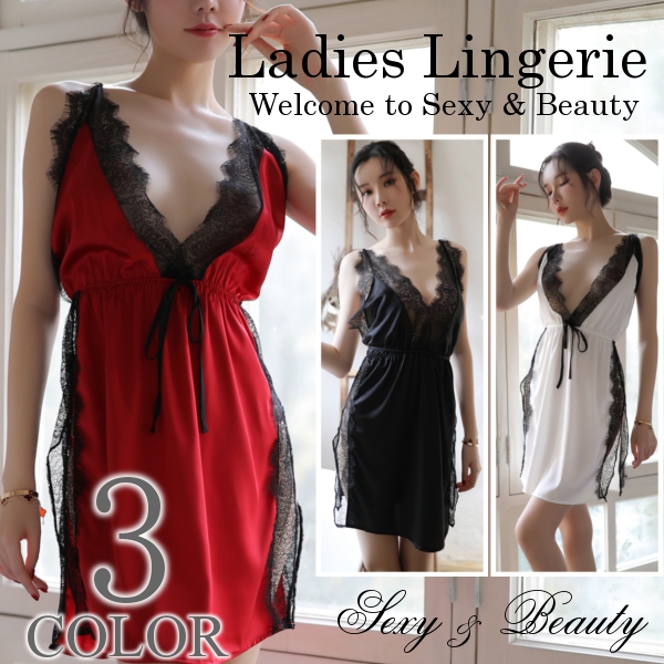 セクシー ランジェリー キャミソール スリップ 下着 かわいい 可愛い セクシーランジェリー フリーサイズ ワンピース セット 部屋着 黒 白 赤 送料無料 ネコポス便