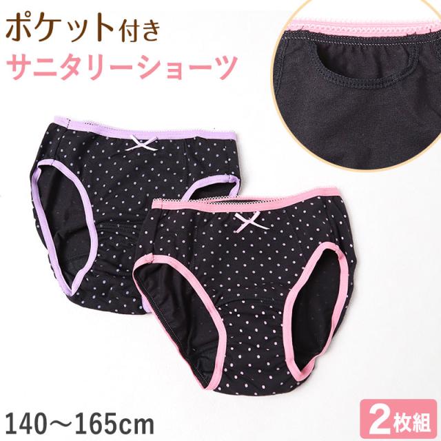 サニタリーショーツ ジュニア ポケット 綿 2枚組 140cm〜165cm 生理用ショーツ 子供 ポケット付き サニタリー 生理 ショーツ パンツ キッズ 女の子 ジュニアインナー インナー アソート 140 150 160 165