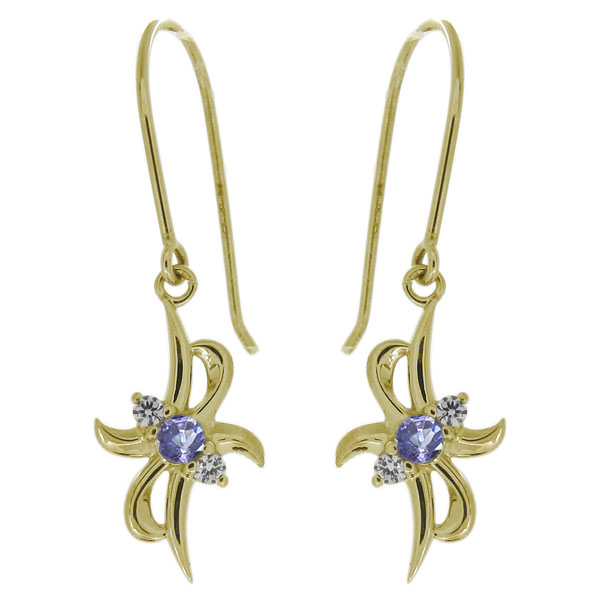 【送料無料】レディース・ピアス・揺れる・シンプル・タンザナイト・12月誕生石・フックピアス・10金