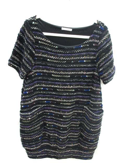 【中古】シンプリシテェ Simplicite ワンピース コクーン ミニ 半袖 総柄 黒 ブラック /YI レディース