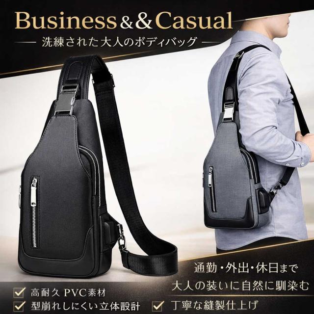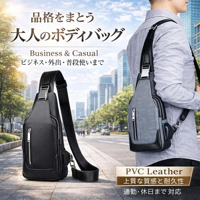 無駄を省いたスタイリッシュなフォルムで、スーツ・ジャケット・私服まで幅広く対応。 通勤・通学・営業・出張・旅行など、あらゆるシーンで活躍する大人のメンズボディバッグです。 |