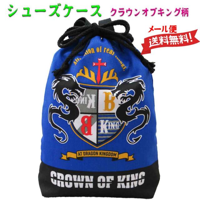 送料無料 シューズバッグ クラウンオブキング柄 女の子 男の子 シューズケース 運動靴バッグ 上履き入れ 外履き入れ 小学校 入園 入学