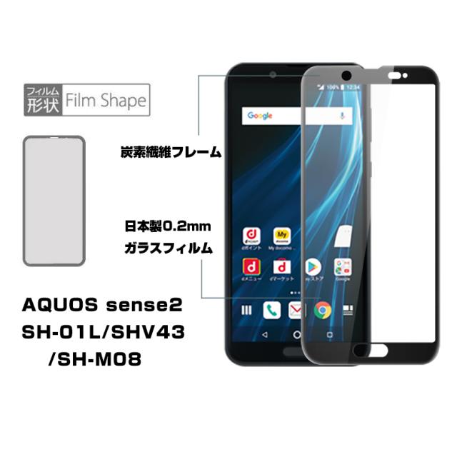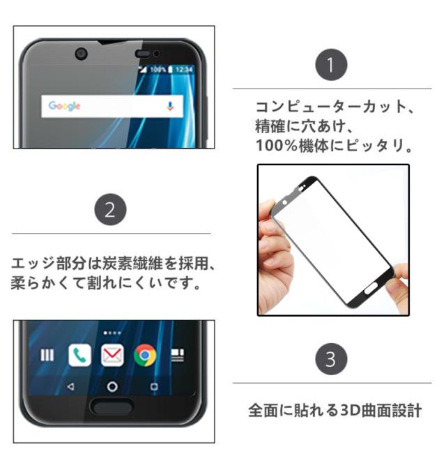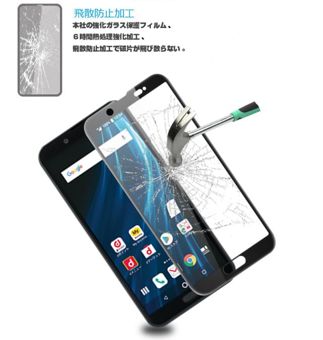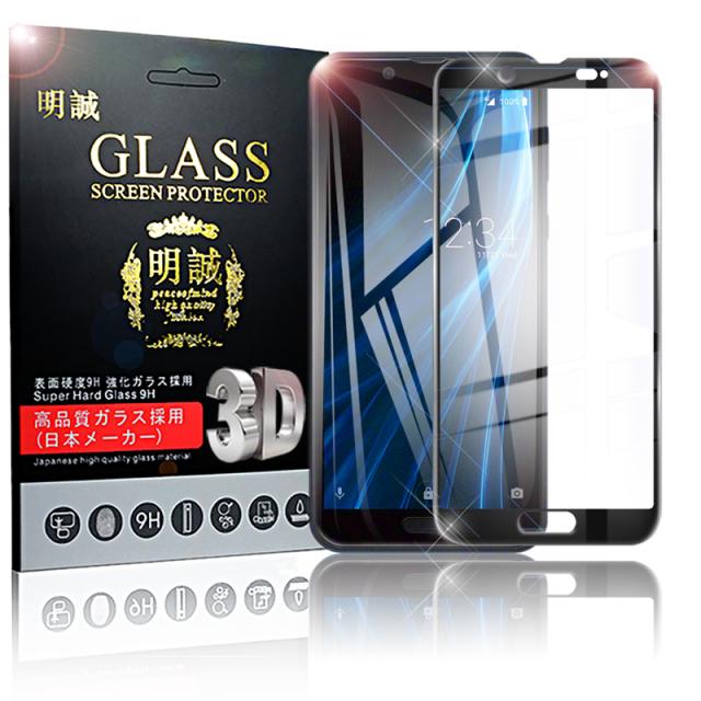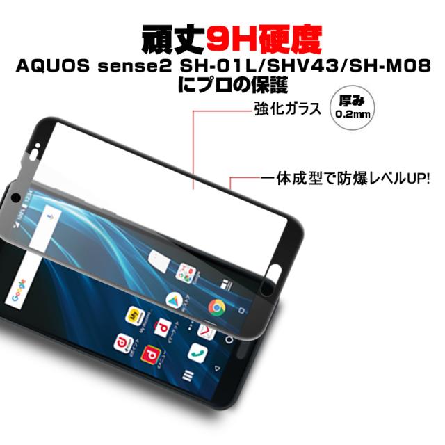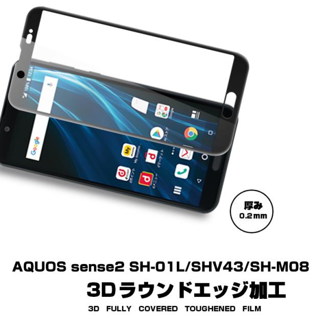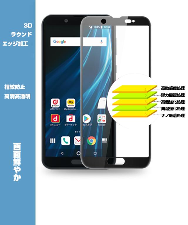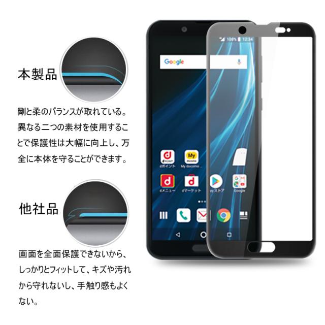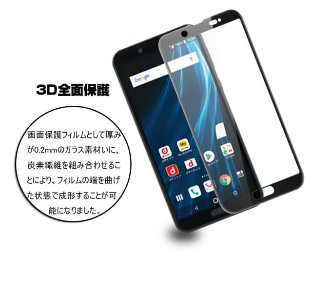 【2枚セット】AQUOS Sense2 3D全面保護 ソフトフレーム フルーカバー 強化ガラス保護フィルム 曲面液晶保護シール 画面保護シート