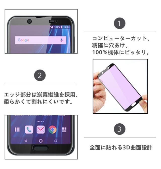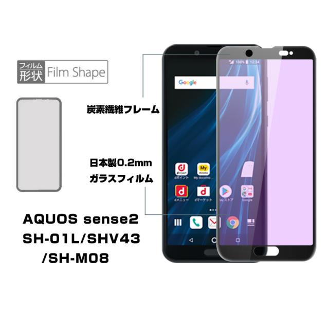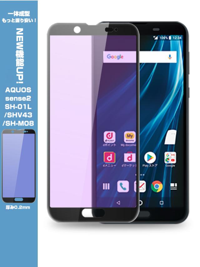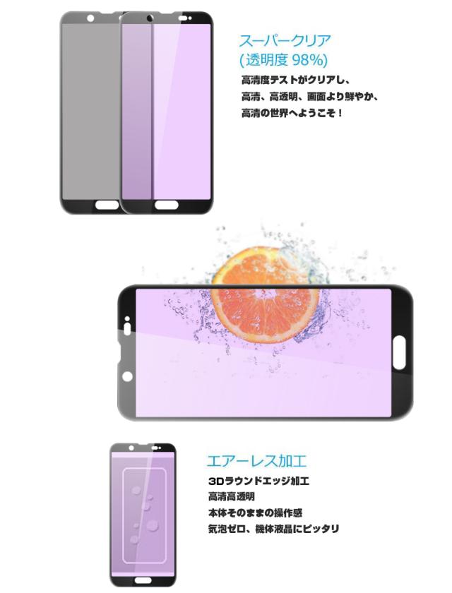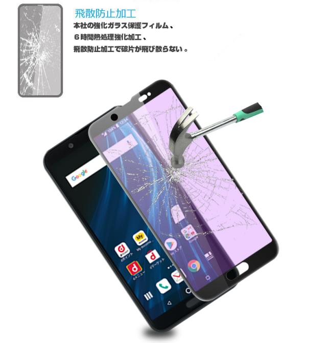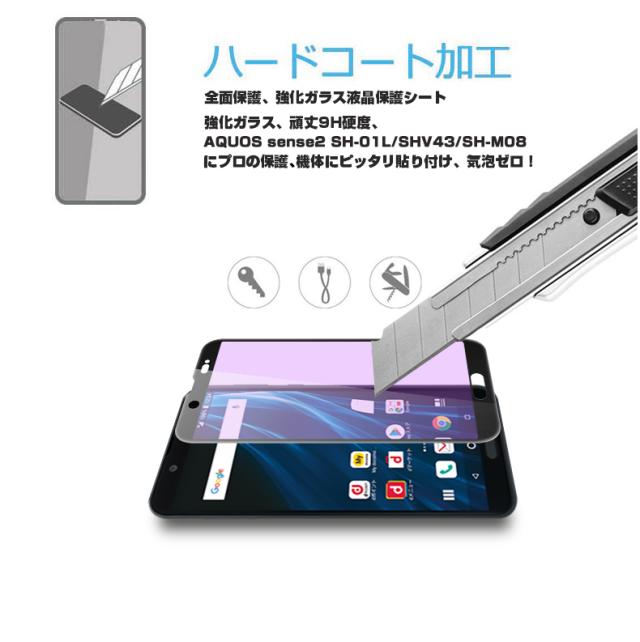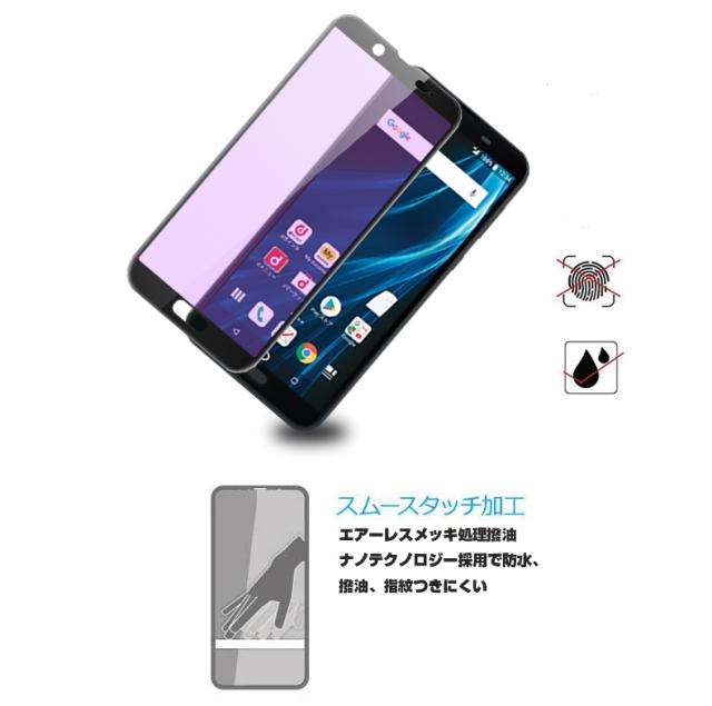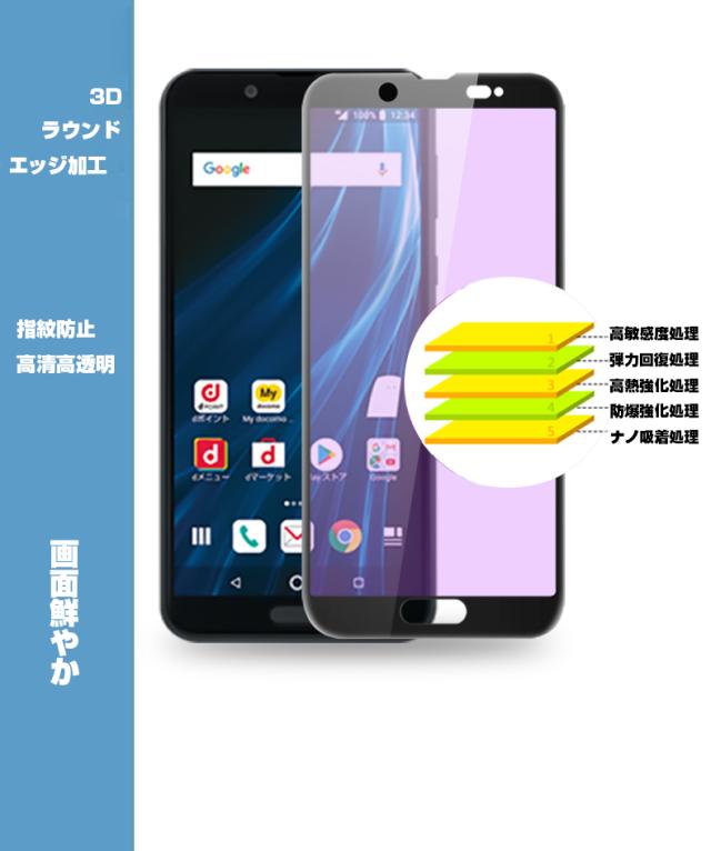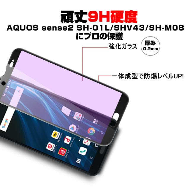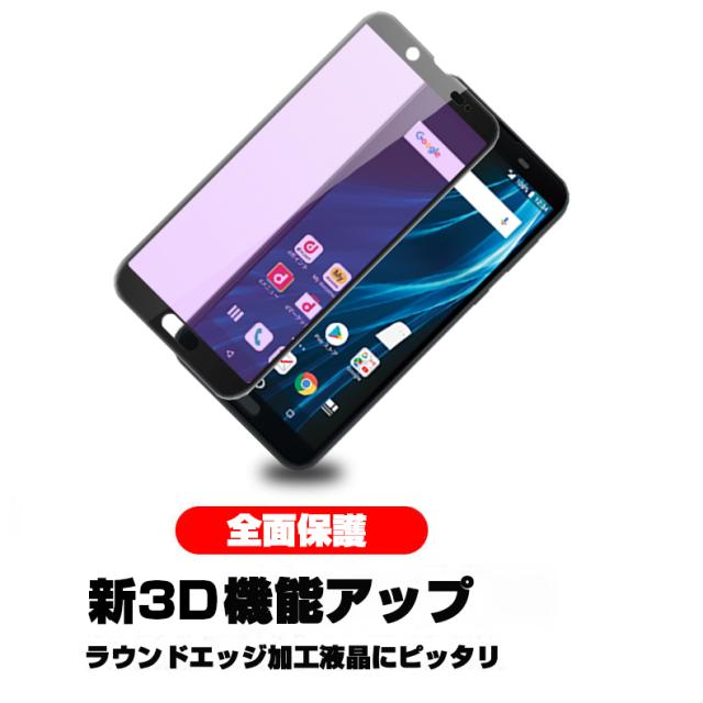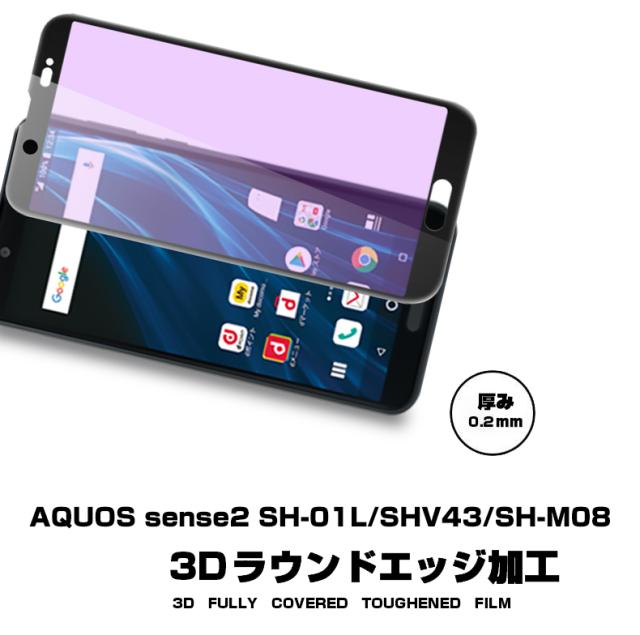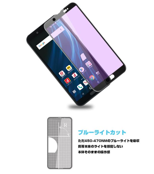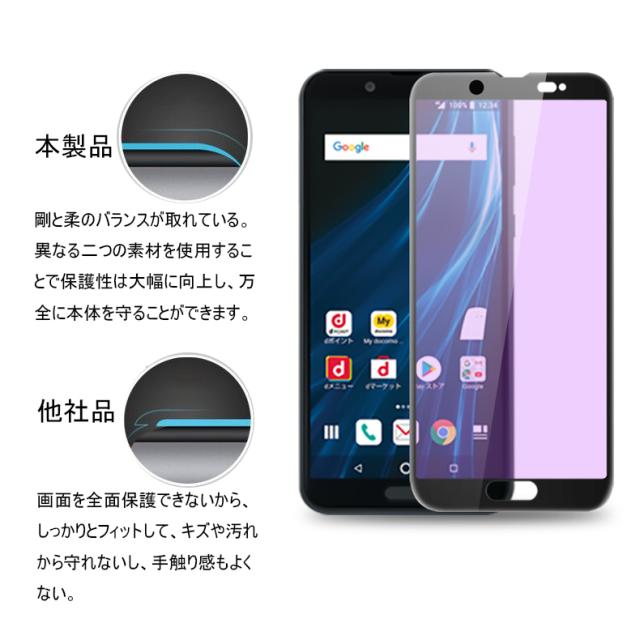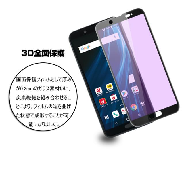 【2枚セット】AQUOS Sense2 3D全面保護 ブルーライトカット強化ガラス保護フィルム ソフトフレーム フルーカバー 画面保護シール