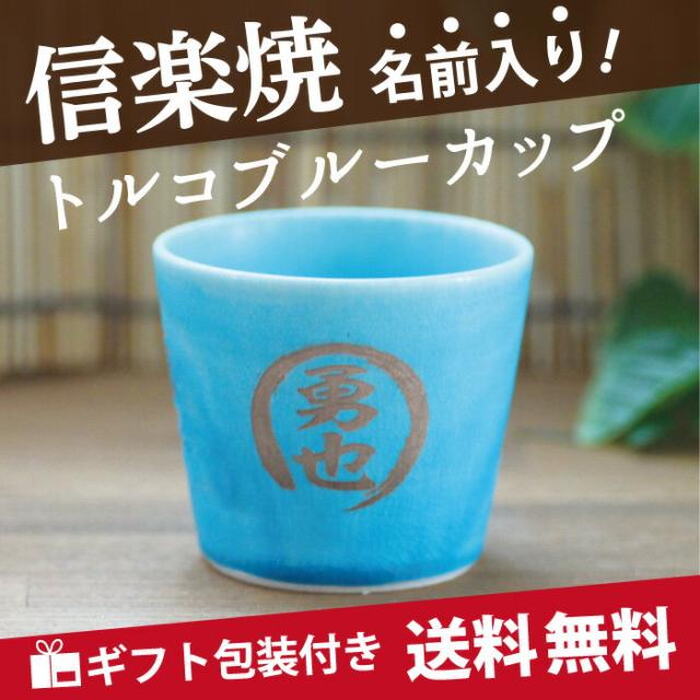 名入れ ギフト プレゼント 誕生日 信楽焼 トルコブルー カップ 結婚祝い おしゃれ 敬老の日