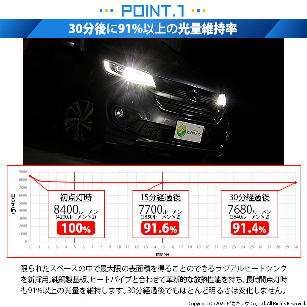 ※ルーメン値は、バルブ2個(車両一台分)の値を示しています。