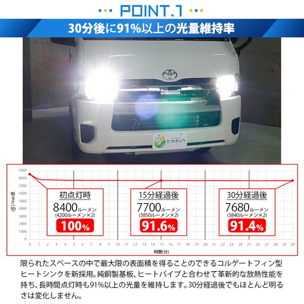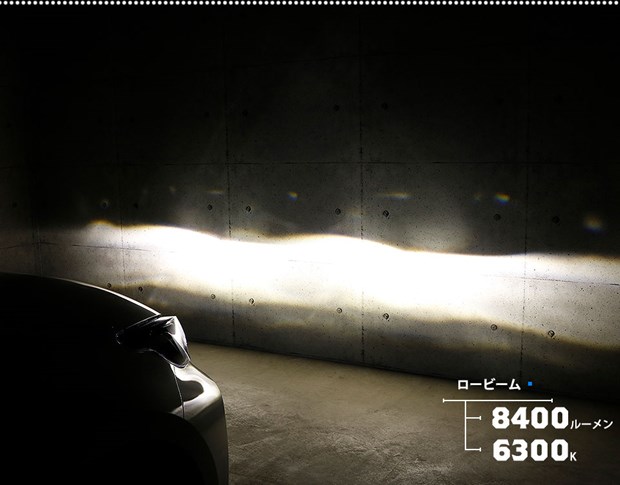 全光束8400ルーメン(lm) ※ルーメン値は、バルブ2個(車両一台分)の値を示しています。 | |||