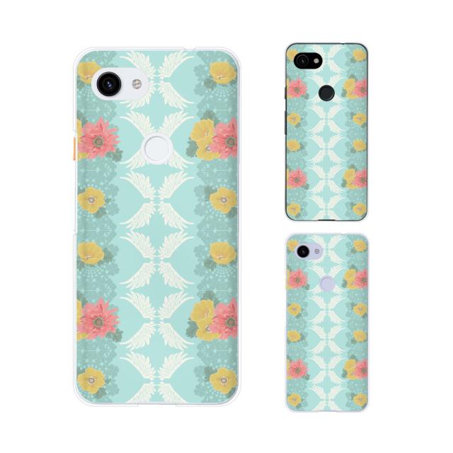 Google Pixel 3a / 3a XL / 3 / 3 XL スマホ ケース カバー 花柄34 羽 水色
