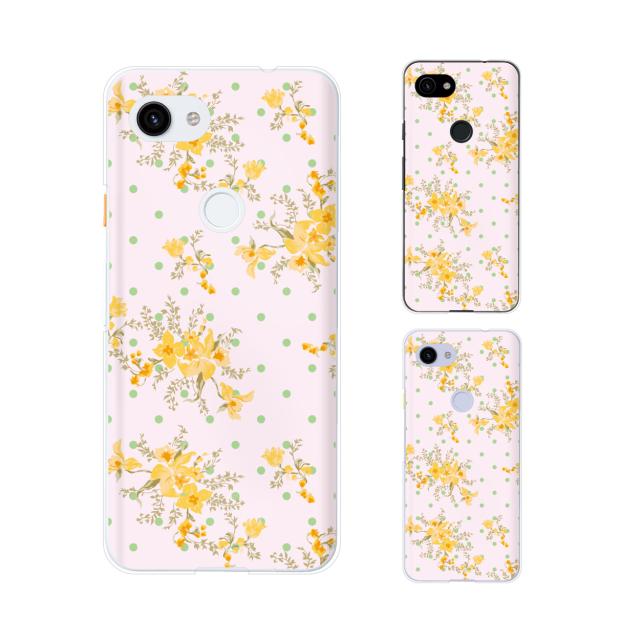 Google Pixel 3a / 3a XL / 3 / 3 XL スマホ ケース カバー 花柄ドット ピンク/黄色