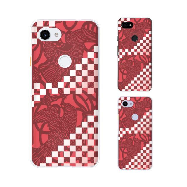 Google Pixel 3a / 3a XL / 3 / 3 XL スマホ ケース カバー 和柄 鳥 小豆色