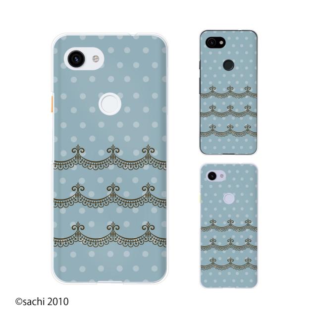 Google Pixel 3a / 3a XL / 3 / 3 XL スマホ ケース カバー レース4 ドット 水色