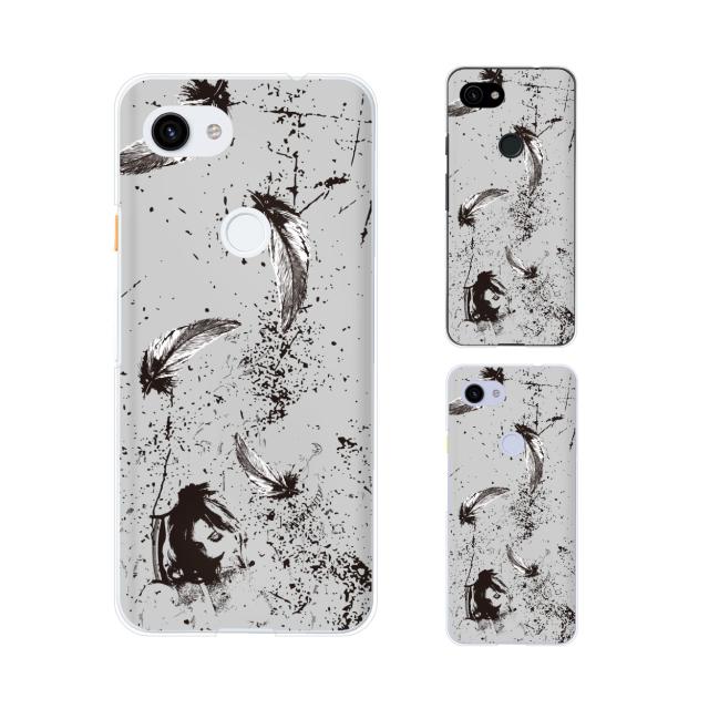 Google Pixel 3a / 3a XL / 3 / 3 XL スマホ ケース カバー 羽1 黒/灰色