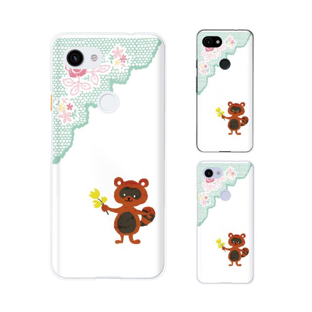 Google Pixel 3a / 3a XL / 3 / 3 XL スマホ ケース カバー たぬき レース 白