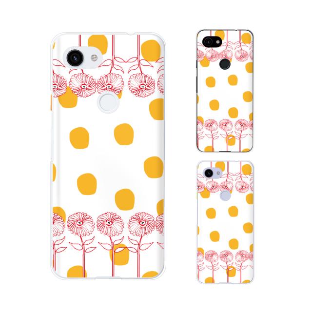 Google Pixel 3a / 3a XL / 3 / 3 XL スマホ ケース カバー 赤花 黄色ドット 白