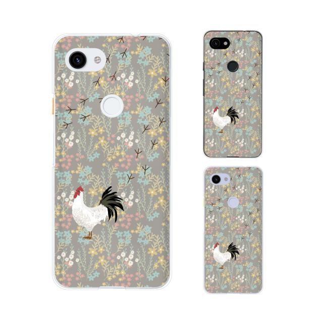 Google Pixel 3a / 3a XL / 3 / 3 XL スマホ ケース カバー にわとり 小花 茶色